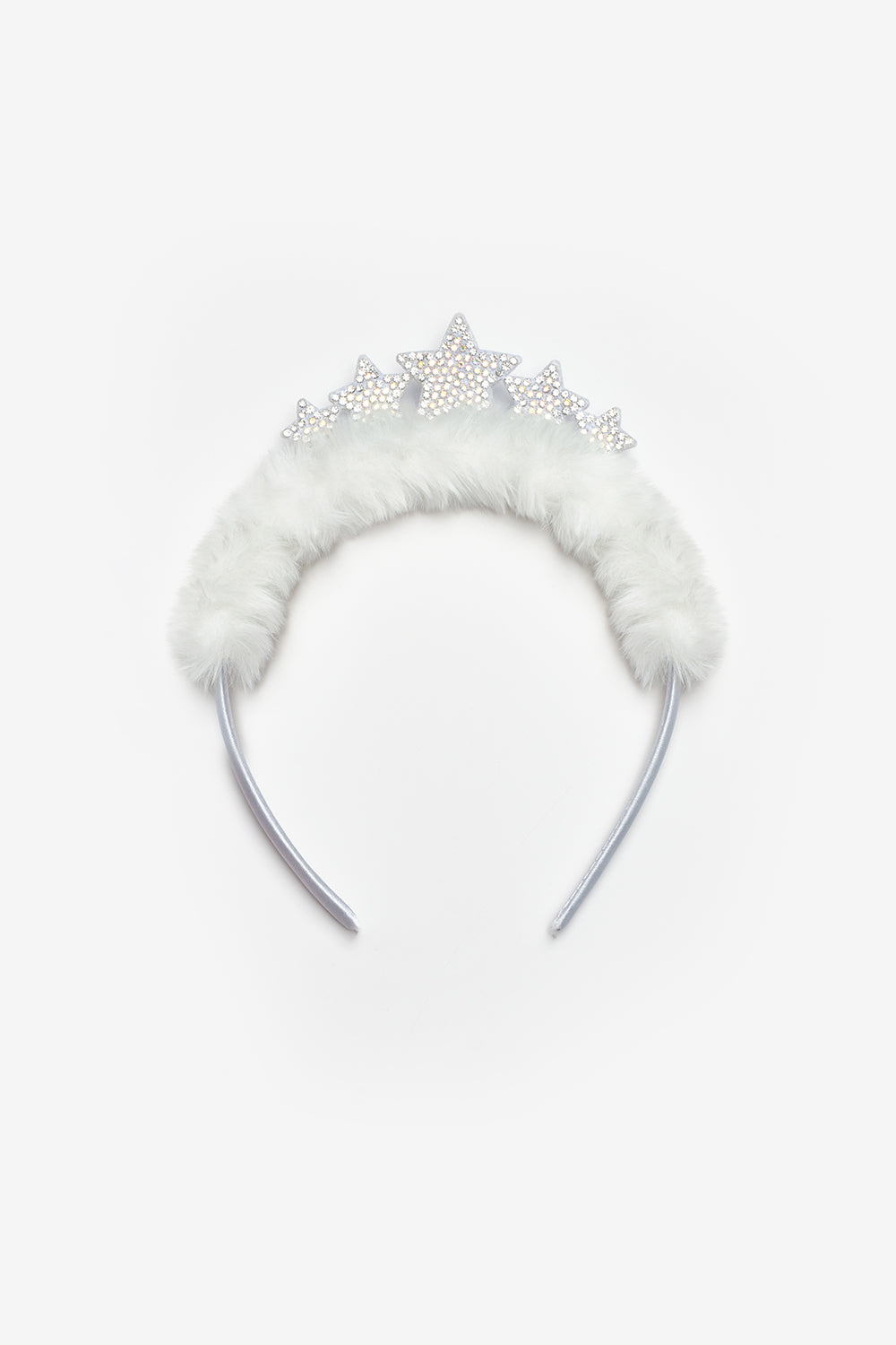 Beyaz Tüylü Yıldız Figürlü Kız Çocuk Taç