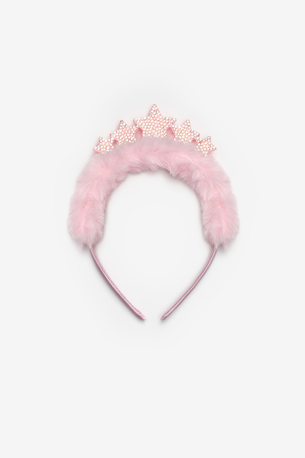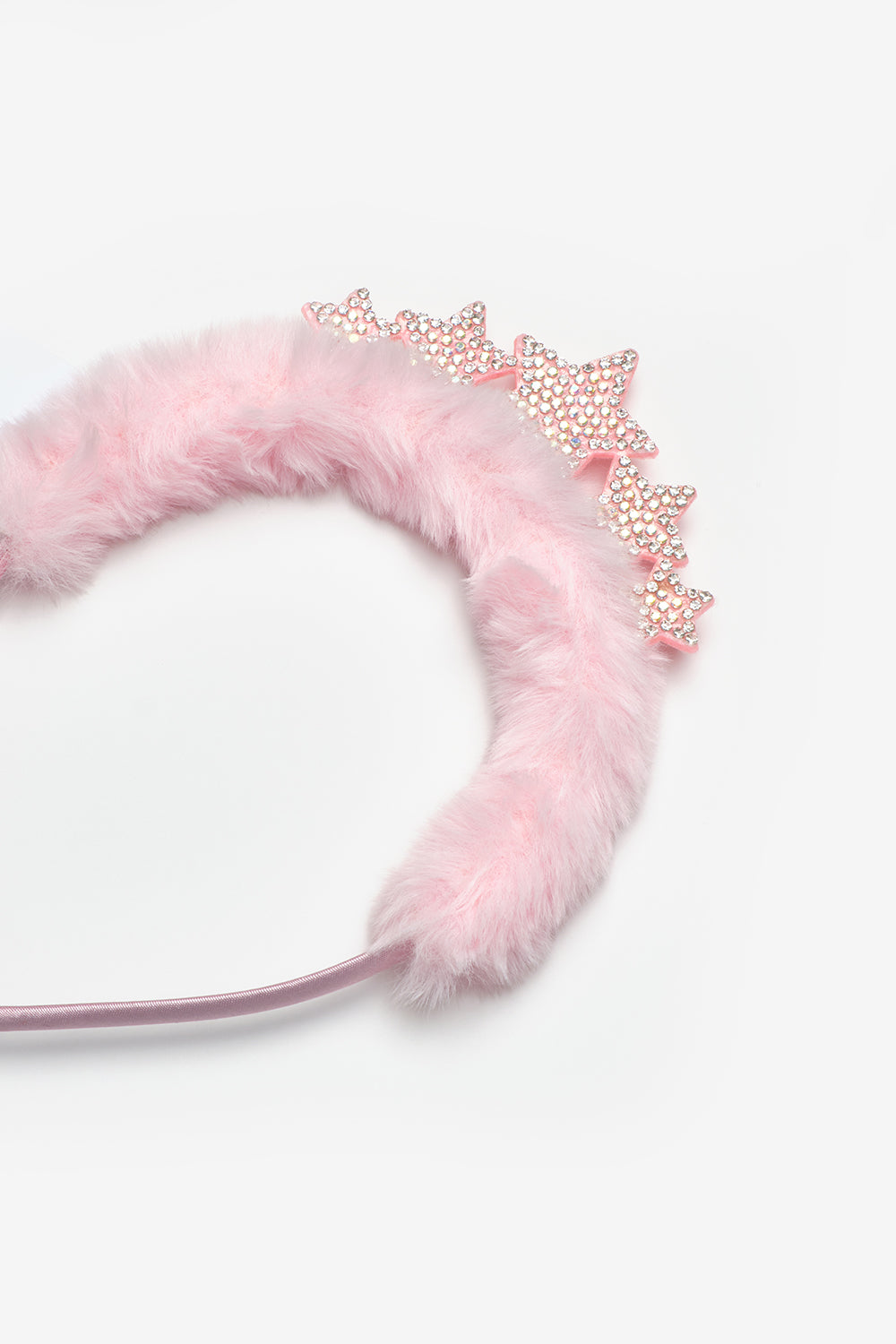 Pembe Tüylü Yıldız Figürlü Kız Çocuk Taç