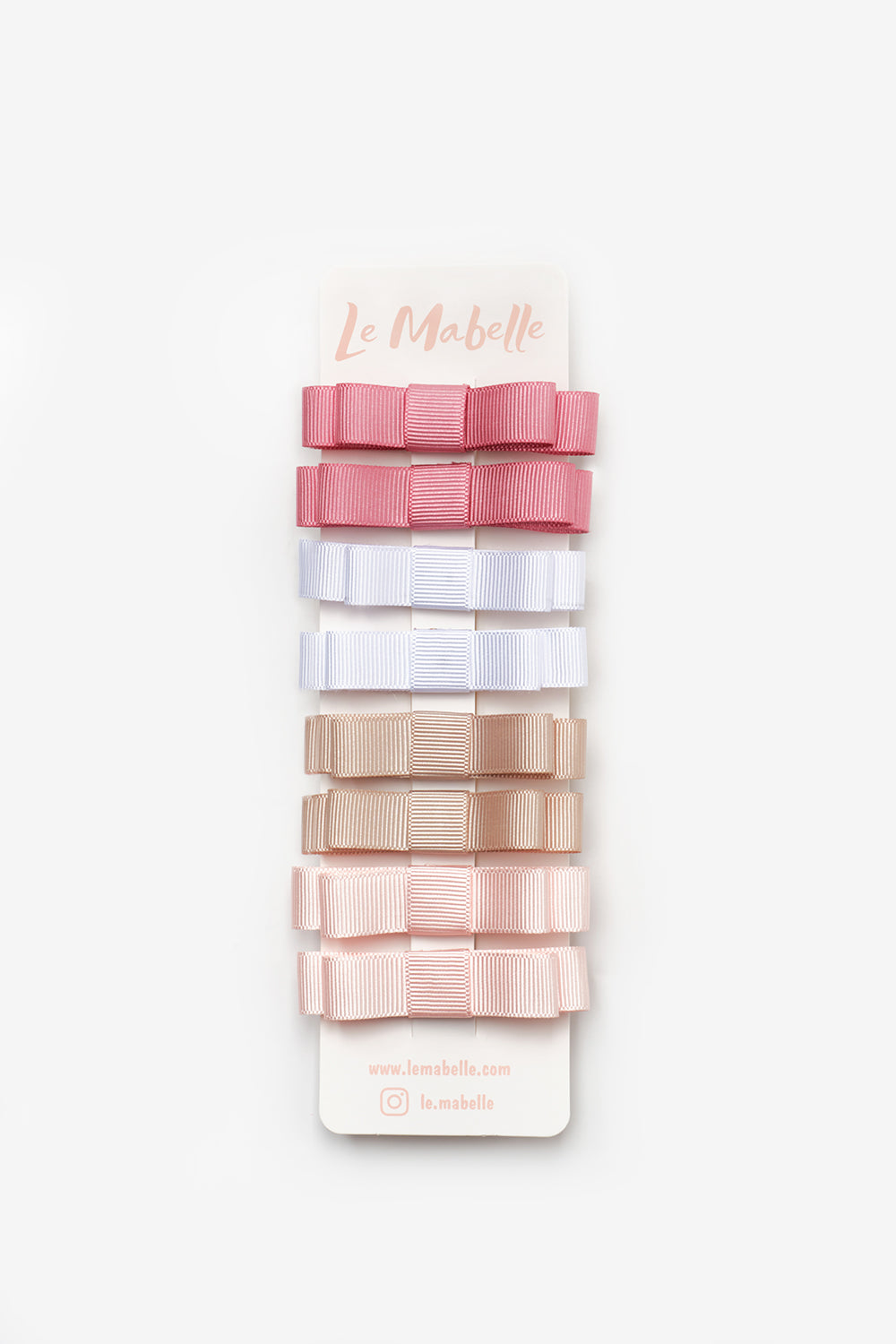 Çok Renkli Pudra Tonları 8'li Mini Kurdele Fiyonk Kız Çocuk Toka Set