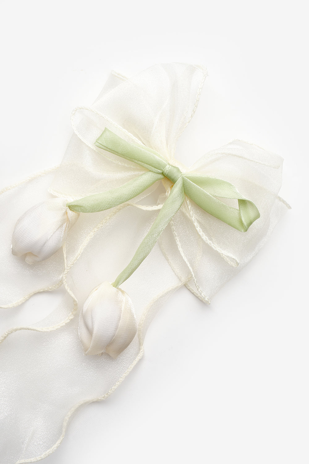 Ekru Lale Figürlü Sallantılı Kız Çocuk Toka