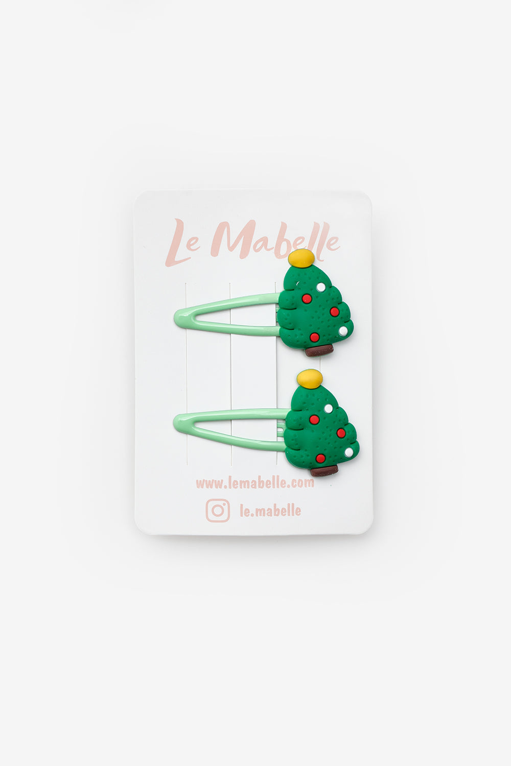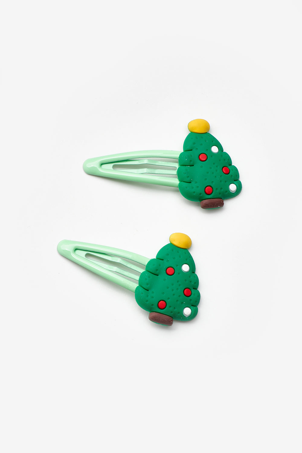 Yeşil Çam Ağacı Figürlü Kız Çocuk Yılbaşı Çıt Çıt Toka Set