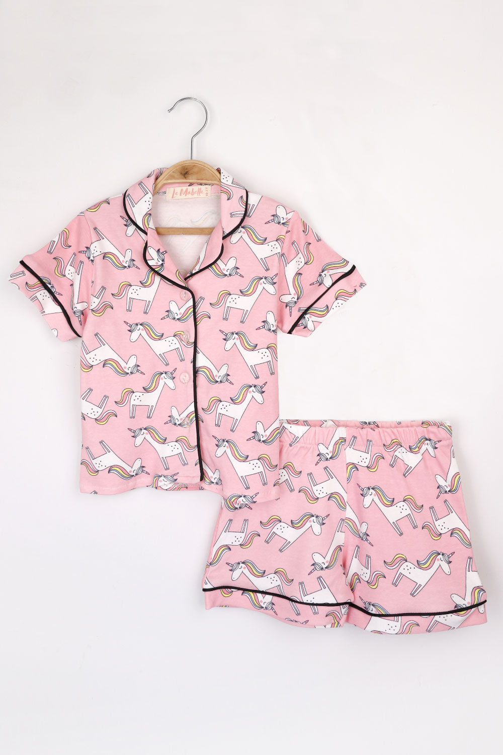Light Pink Unicorn Combed Cotton Girls Pajama Set