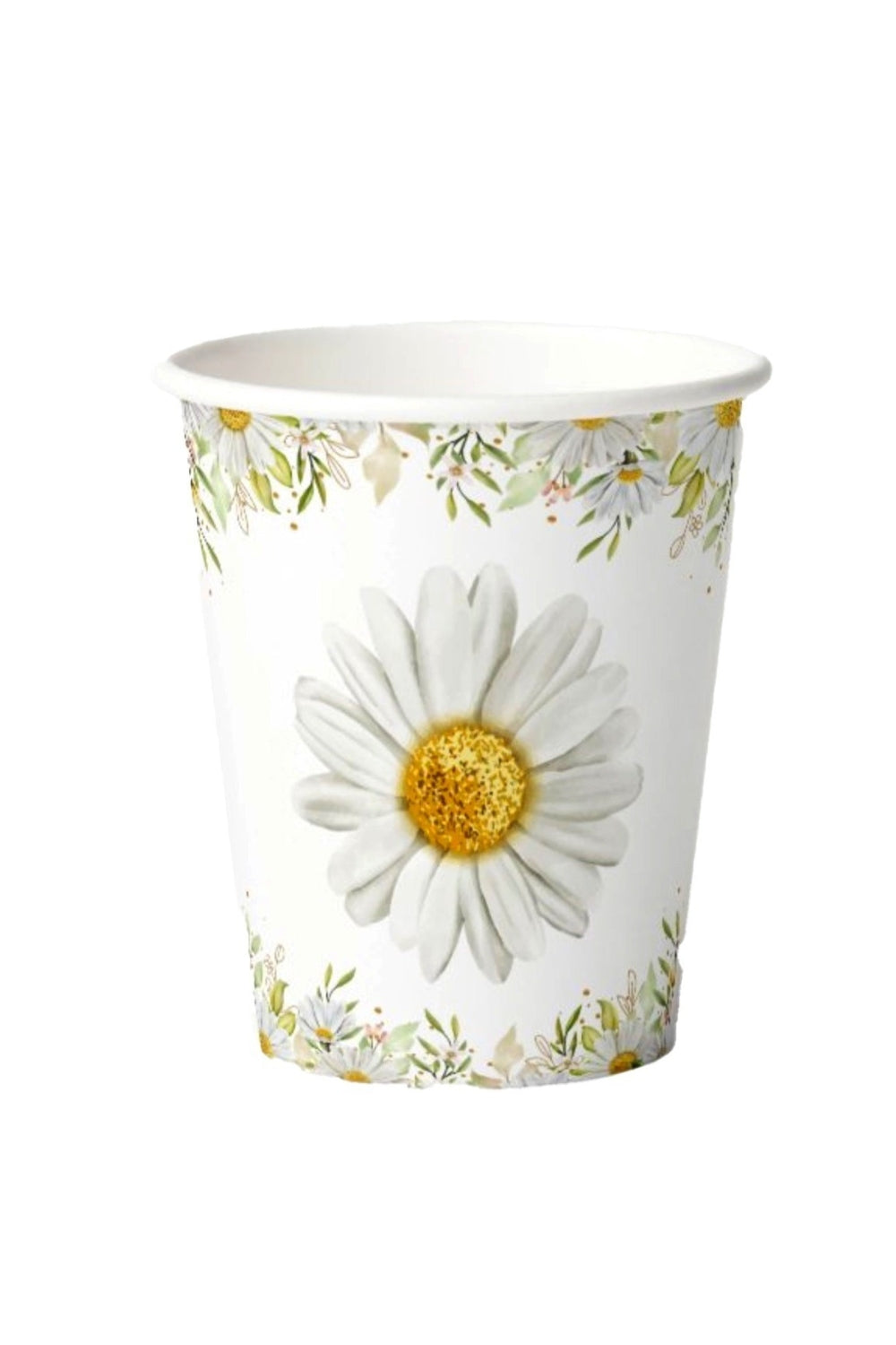 Bringing spring to your table, the Daisy-Themed Plate and Glass Set includes 8 plates and 8 glasses. It offers both aesthetic and practical use for birthdays, baby showers, picnics, and all other special celebrations. Made of durable cardboard, its single-use design ensures hygienic and easy serving.