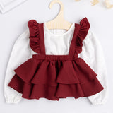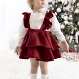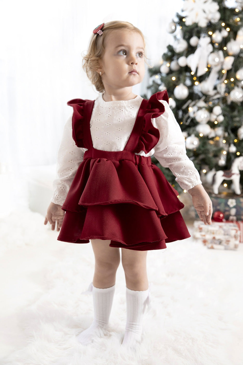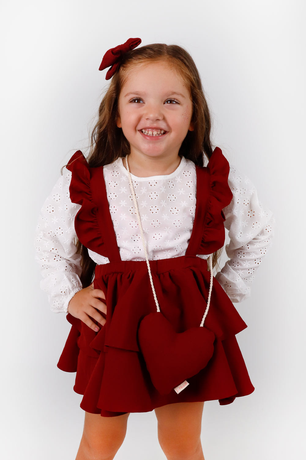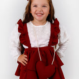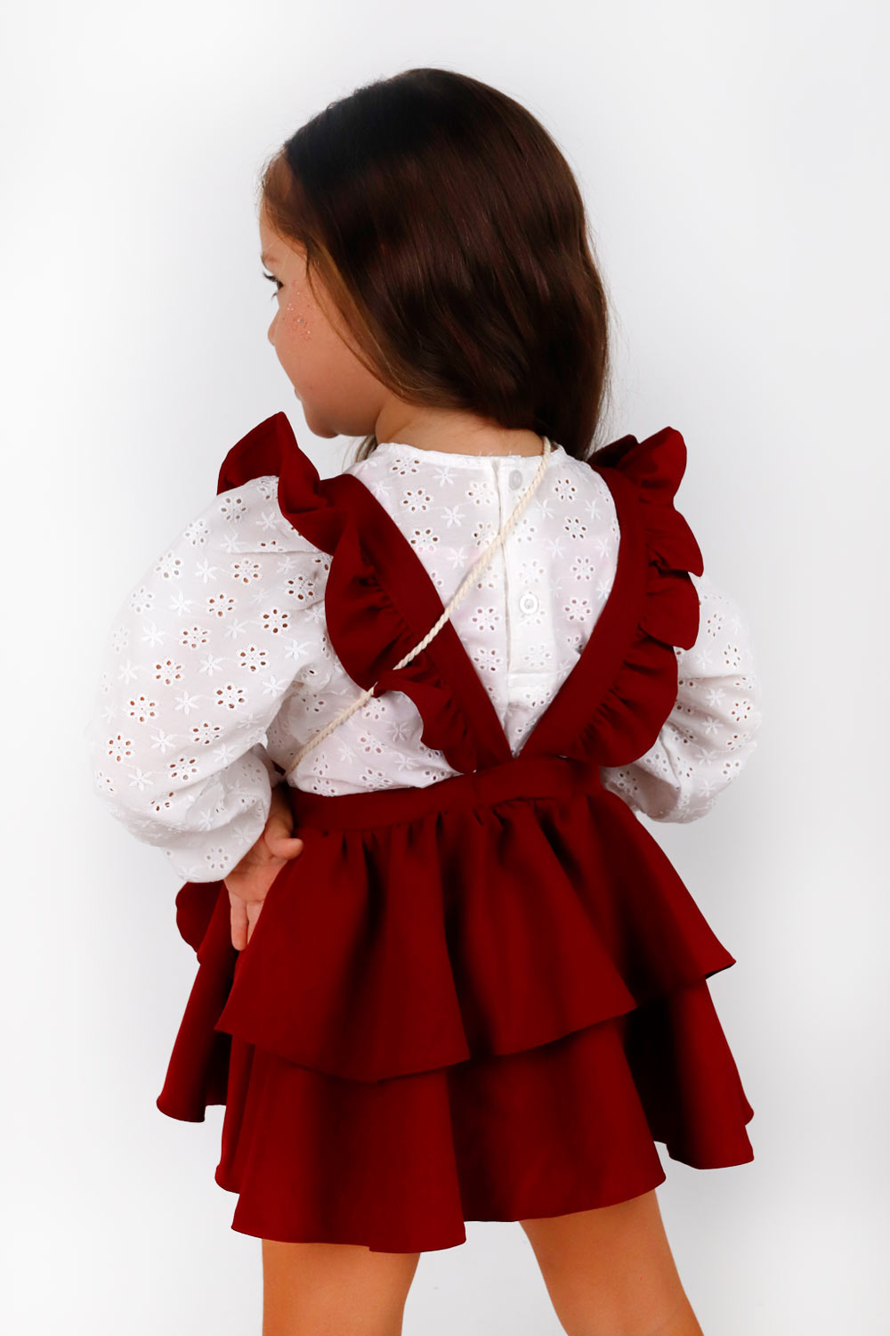 Claret Red Long Sleeve Strappy Skirt and Blouse Set - Nessa