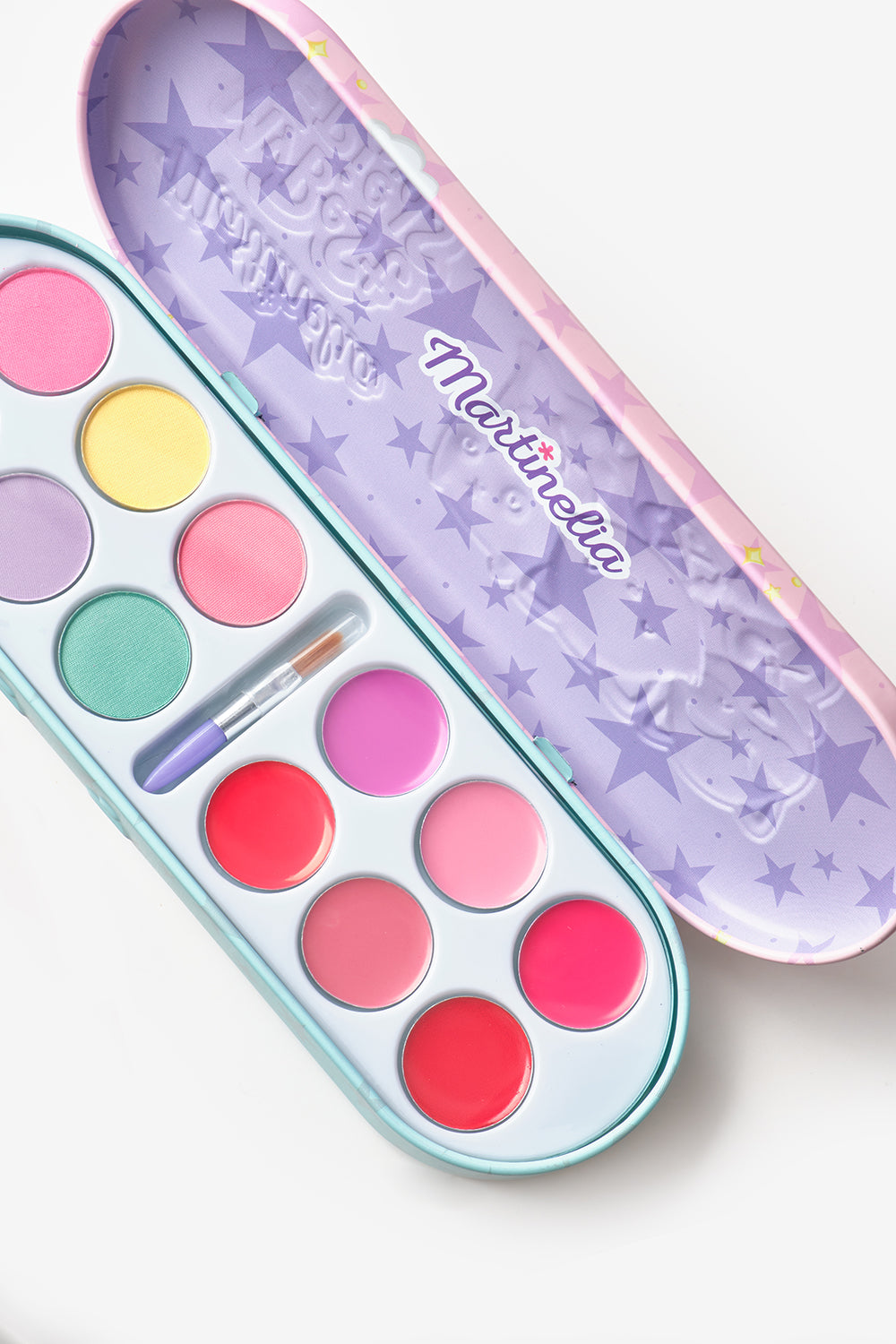 This set helps little ones unleash their creativity. Designed for safe use by children, it offers a fun activity at birthday parties, playtime, or gatherings with friends. It's a fun and stylish gift for young fashionistas. Product Content: 6 Lip Gloss, 6 Eye Shadow, 1 Brush, Tin Box