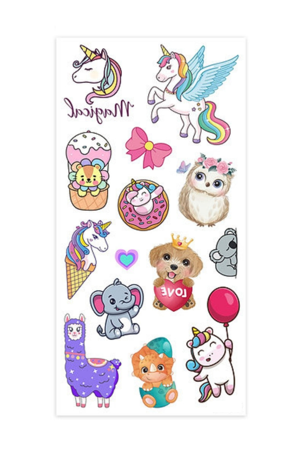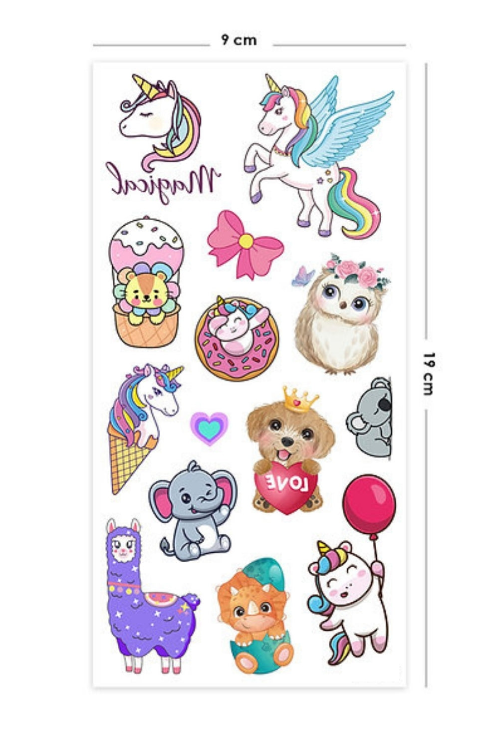 Çok Renkli Sevimli Hayvan Temalı Kız Çocuk Dövme Set