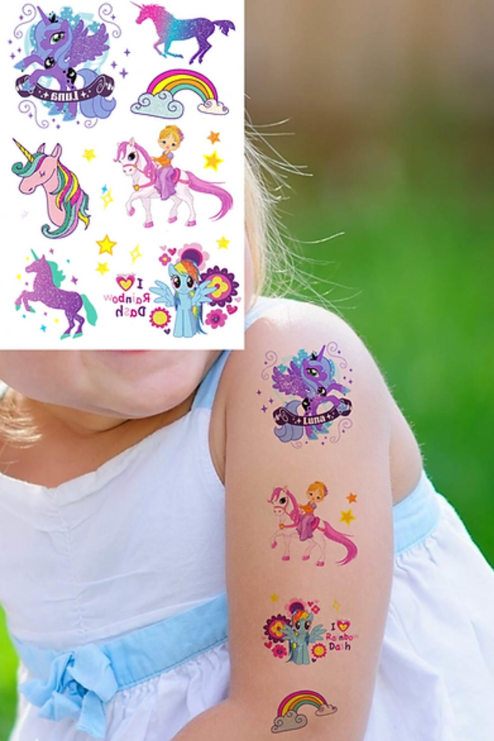 Çok Renkli Simli Unicorn Temalı Kız Çocuk Dövme Set