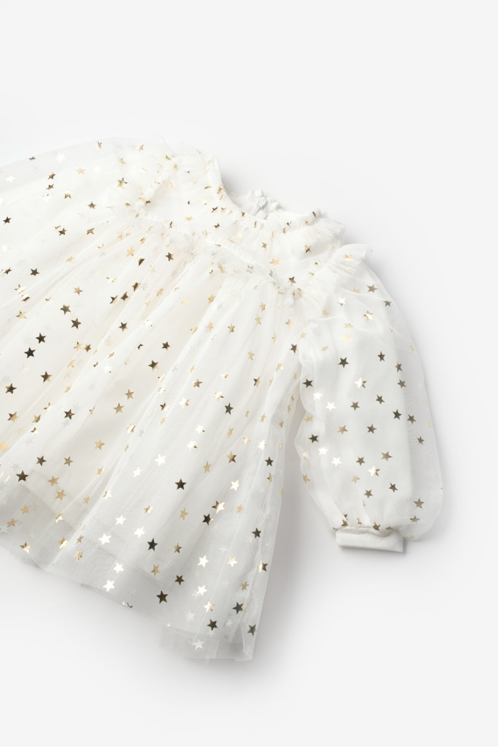Ecru Star Detailed Baby Girl Tulle Dress - Vanessa