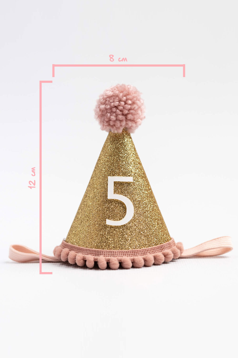 Dusty Rose 5 Year Old Pompom Cone Birthday Crown