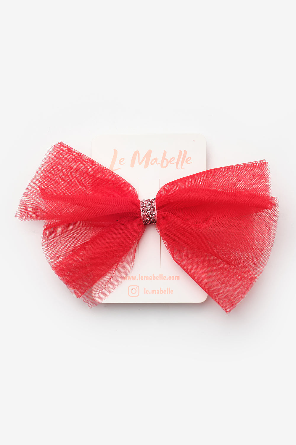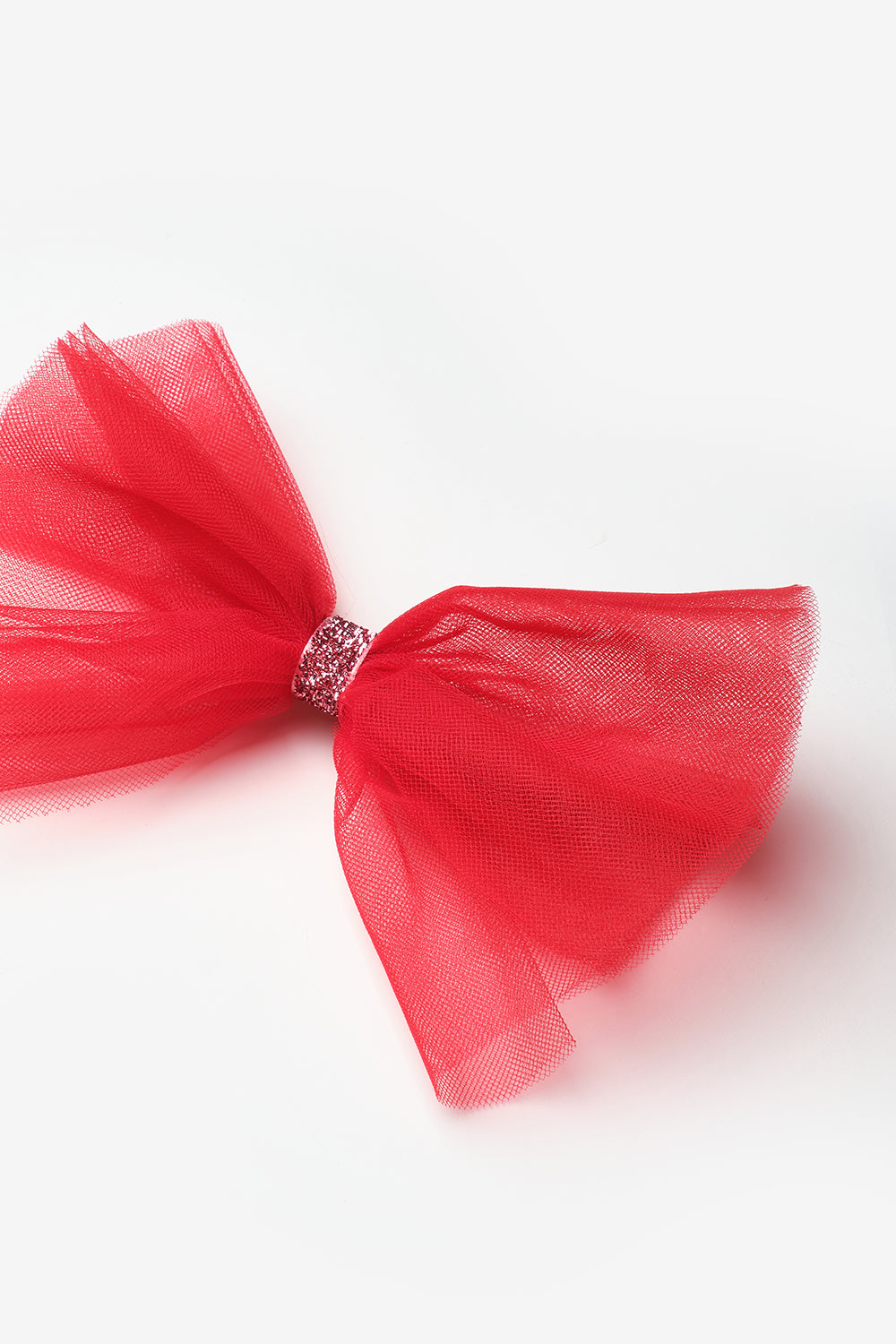 Red Glittery Tie-Up Girls' Tulle Clip Hairclip