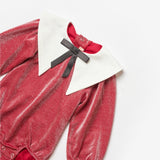 Red Collar Detailed Glittery Baby Girl Jumpsuit - Bailey