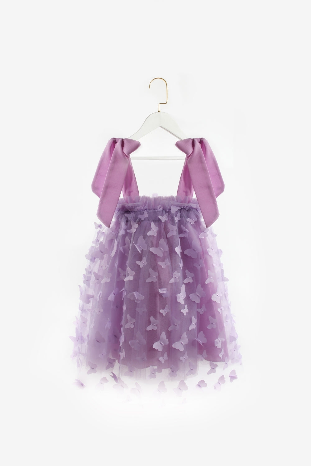 Lilac Shoulder-Tie Butterfly Appliqued Girl's Dress - Nikki