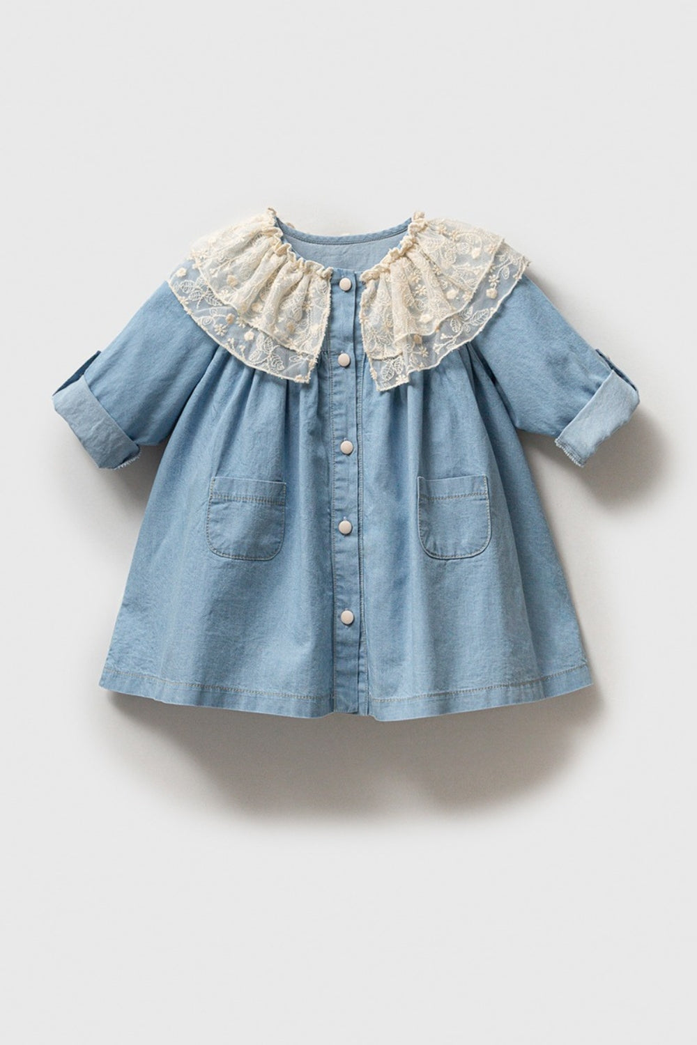 Blue Lace Collar Baby Girl Denim Dress - Rowena