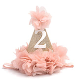 2 written funnel-shaped elastic hair bands with tulle flowers