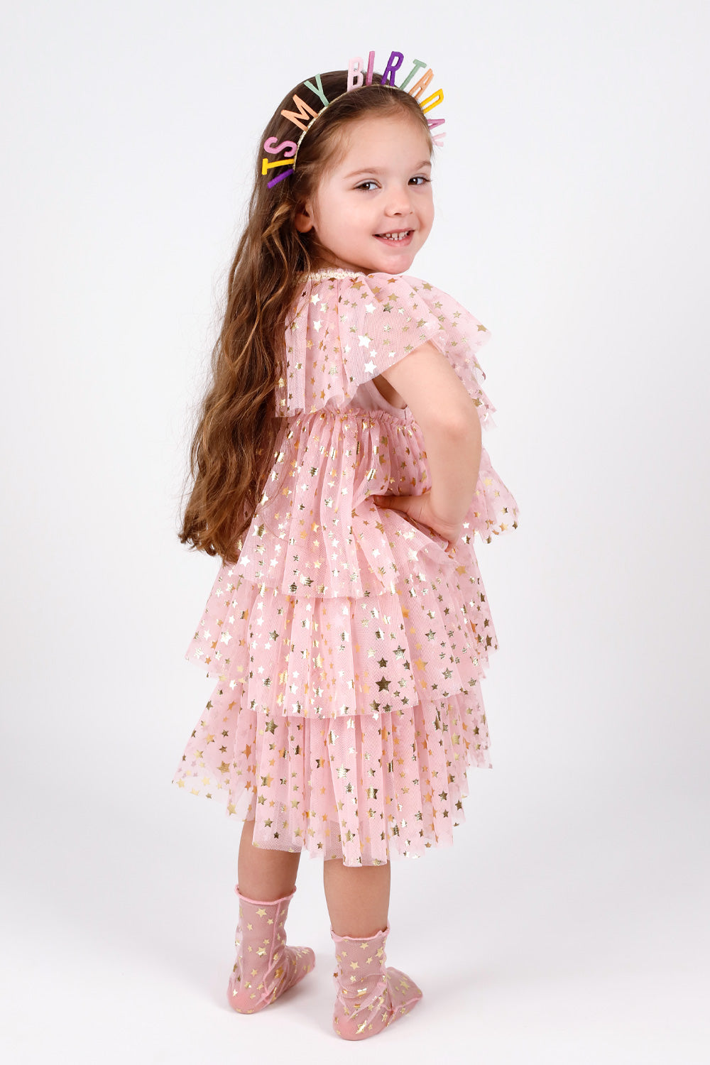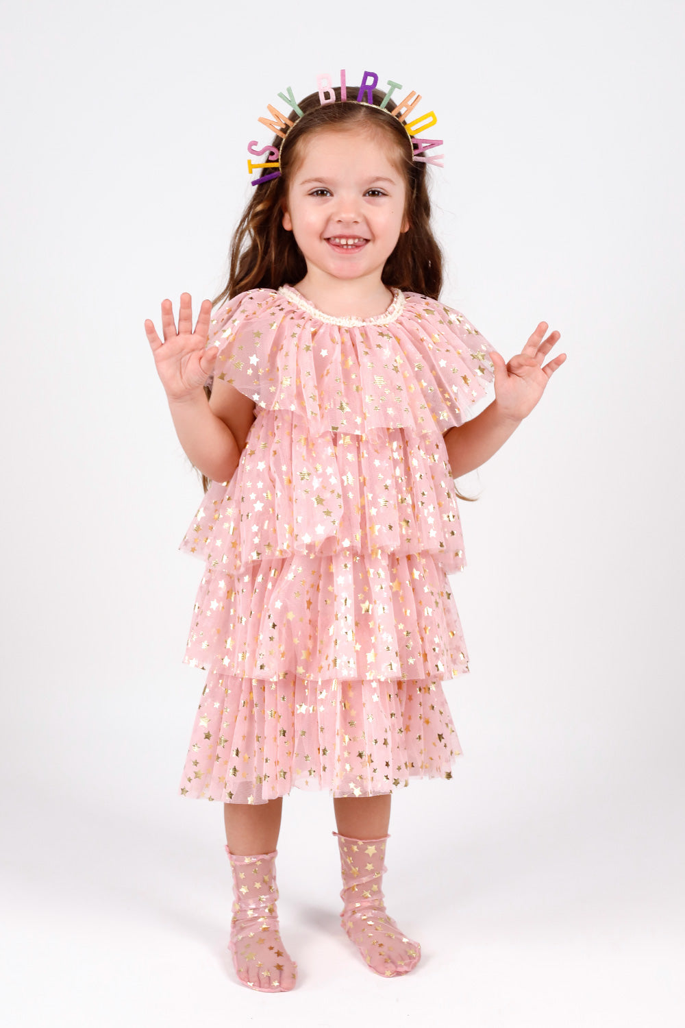 Powder Star Printed Layered Tulle Girl's Dress - Estela