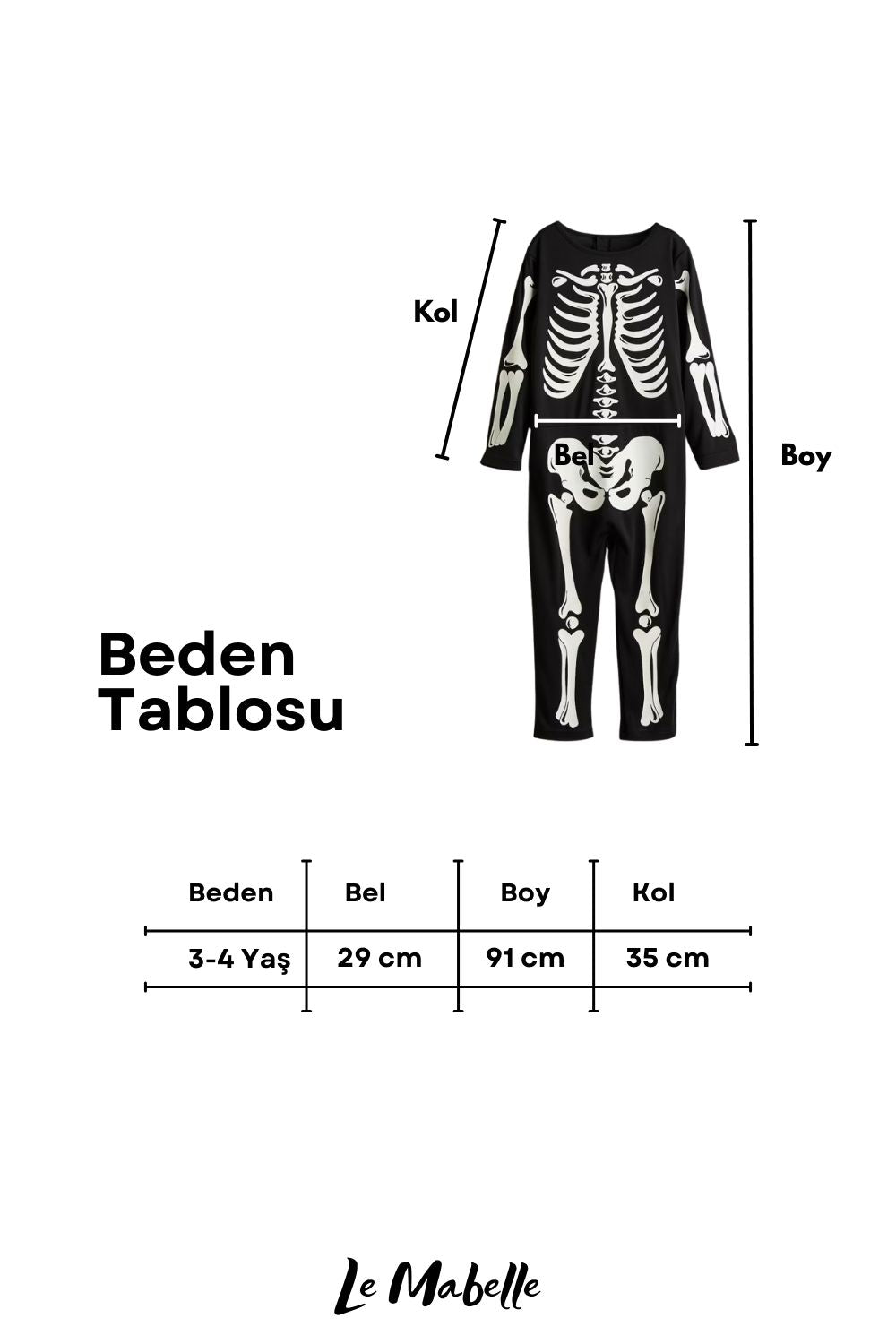 The Skeleton Printed Costume is a fun option that will be a favorite for your little ones for Halloween and themed parties. With its eye-catching skeleton print spread across the entire body, it looks stunning at children's costumed events. With a height of 91 cm, a waist of 29 cm, and arm measurements of 35 cm, it ensures comfortable wear.