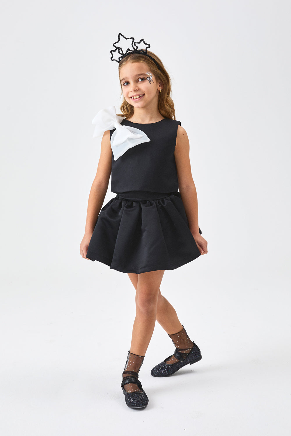 Black Organza Bow Girl's Two-Piece Suit - Gale