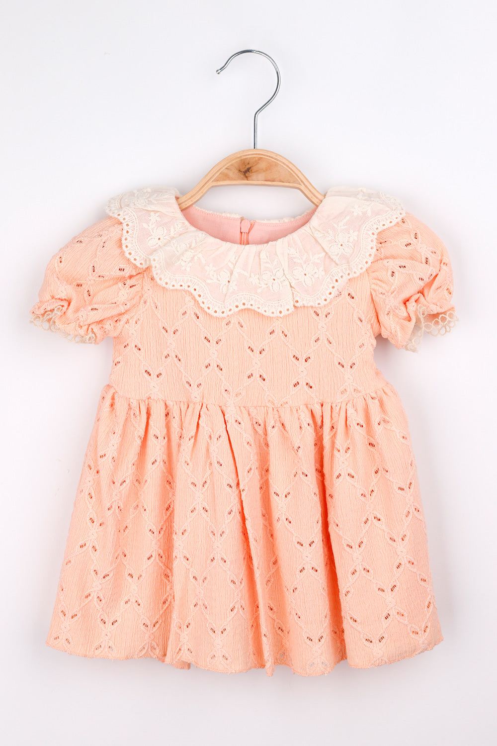 Salmon Scallop Collar Embroidered Baby Girl Dress - Holly