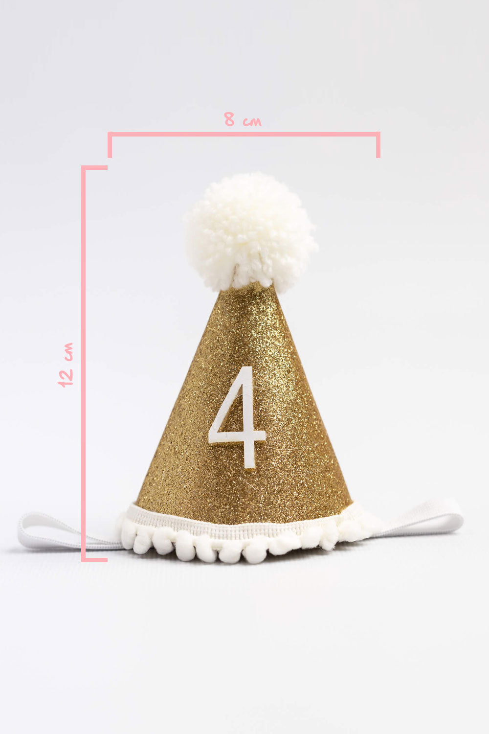 4 Yazılı kenarları ponpon detaylı huni doğum günü tacı