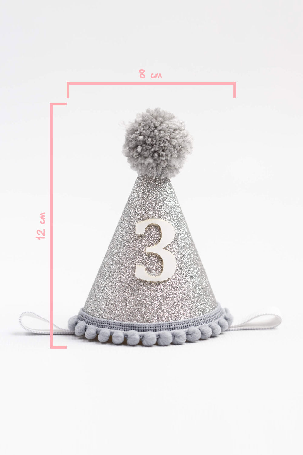 Gri 3 Yaş Ponponlu Huni Doğum Günü Tacı