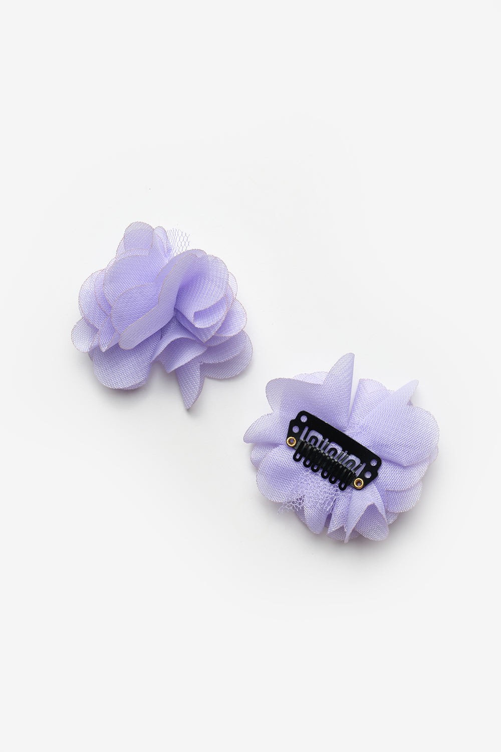 Lila 2'li Tül Çiçek Saçsız Bebek Tokası