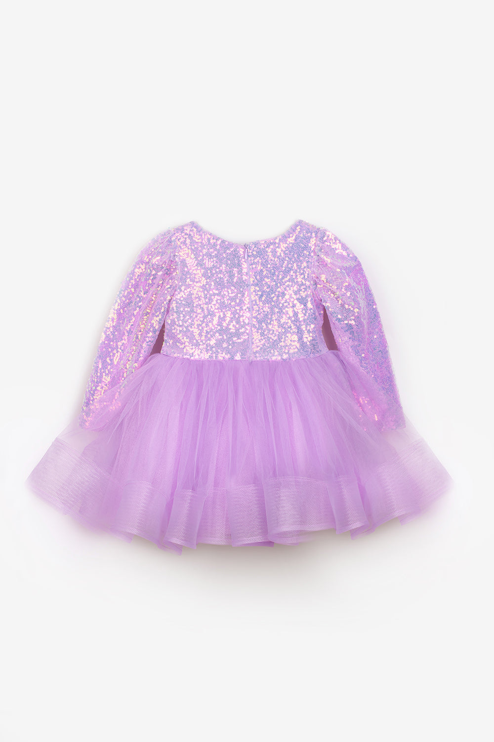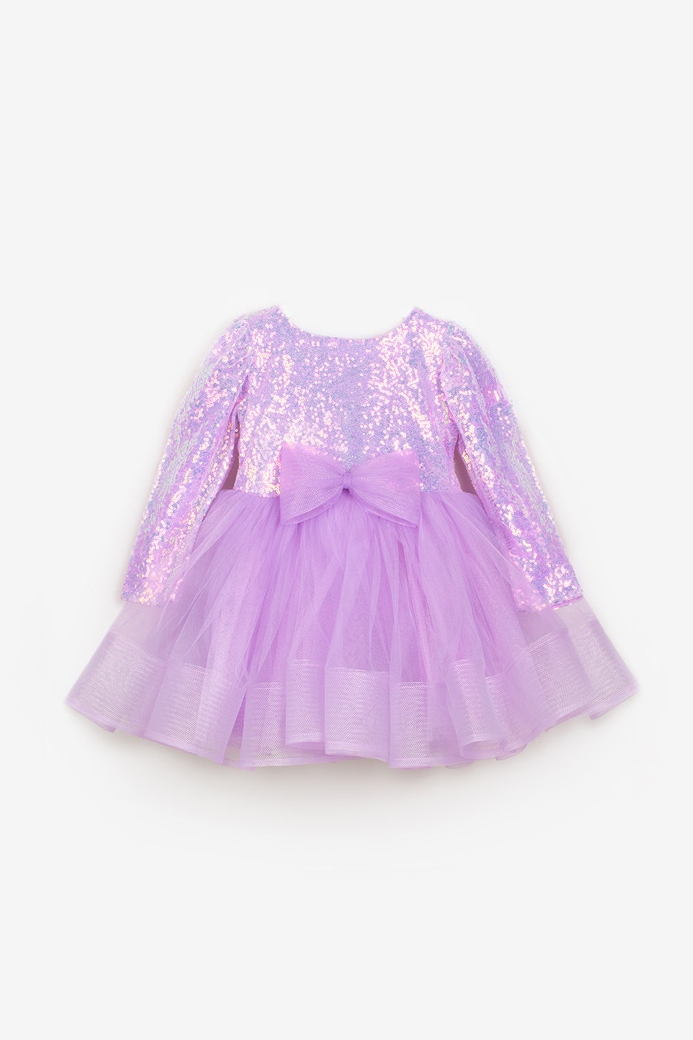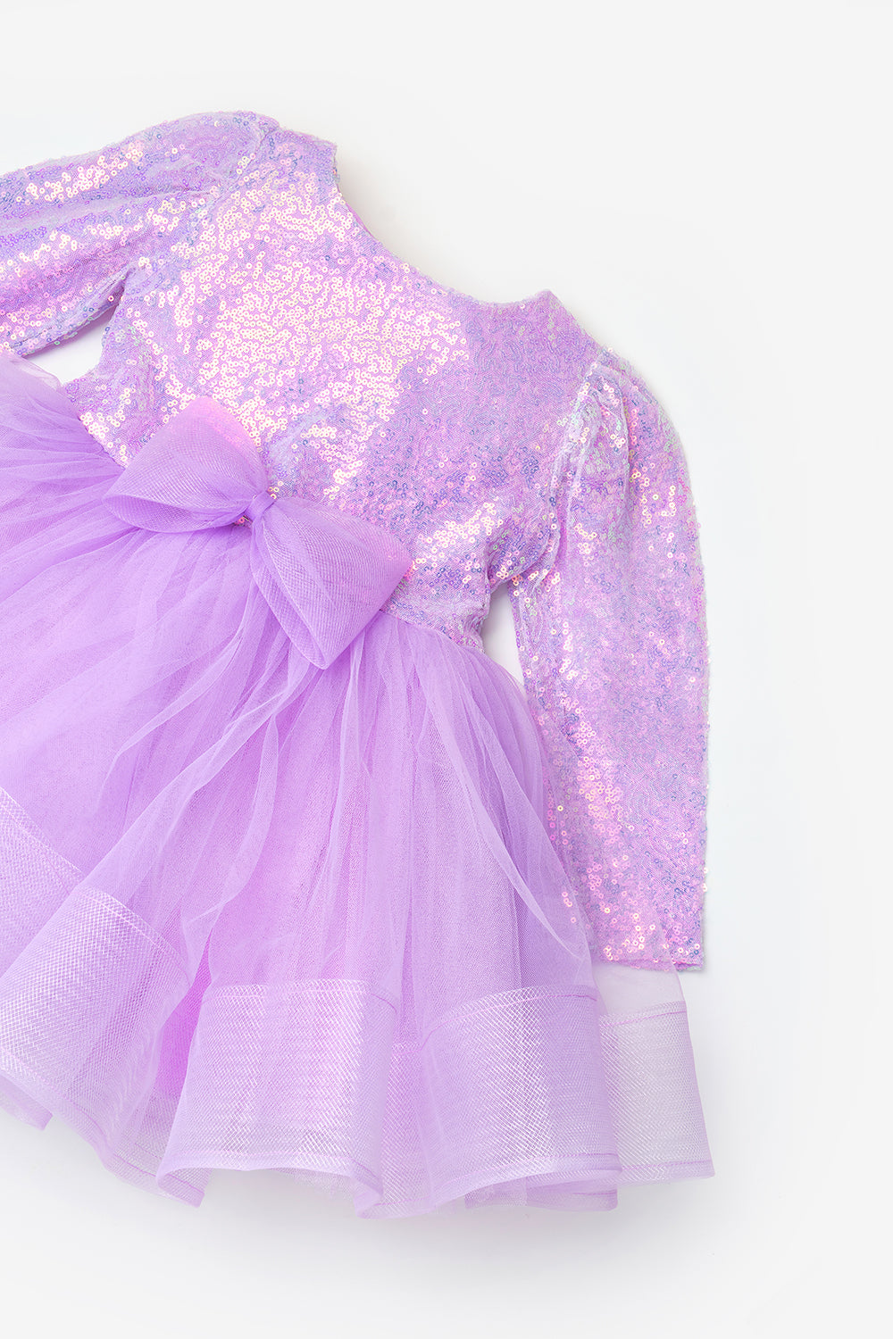 Lila Pullu Grenli Fiyonk Detaylı Kız Çocuk Elbise - Irene