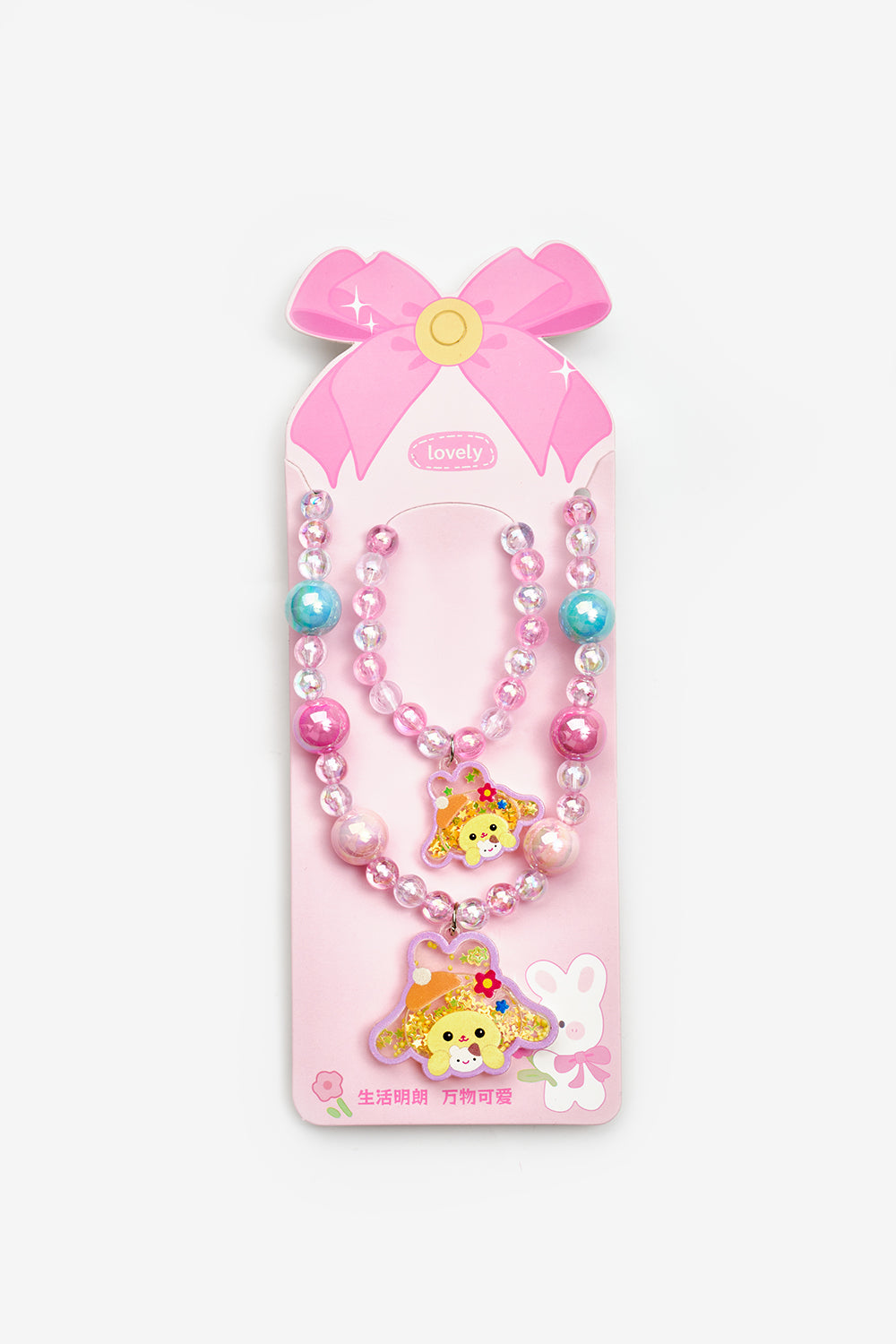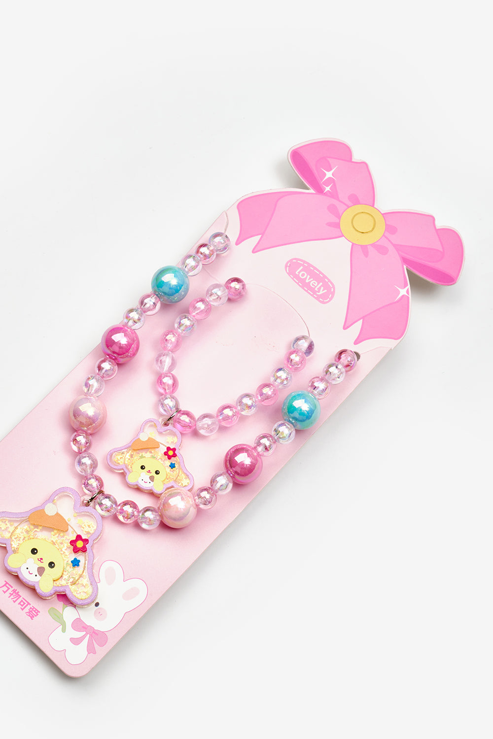 Pembe Pompomourin Figürlü Kız Çocuk Kolye ve Bileklik Set