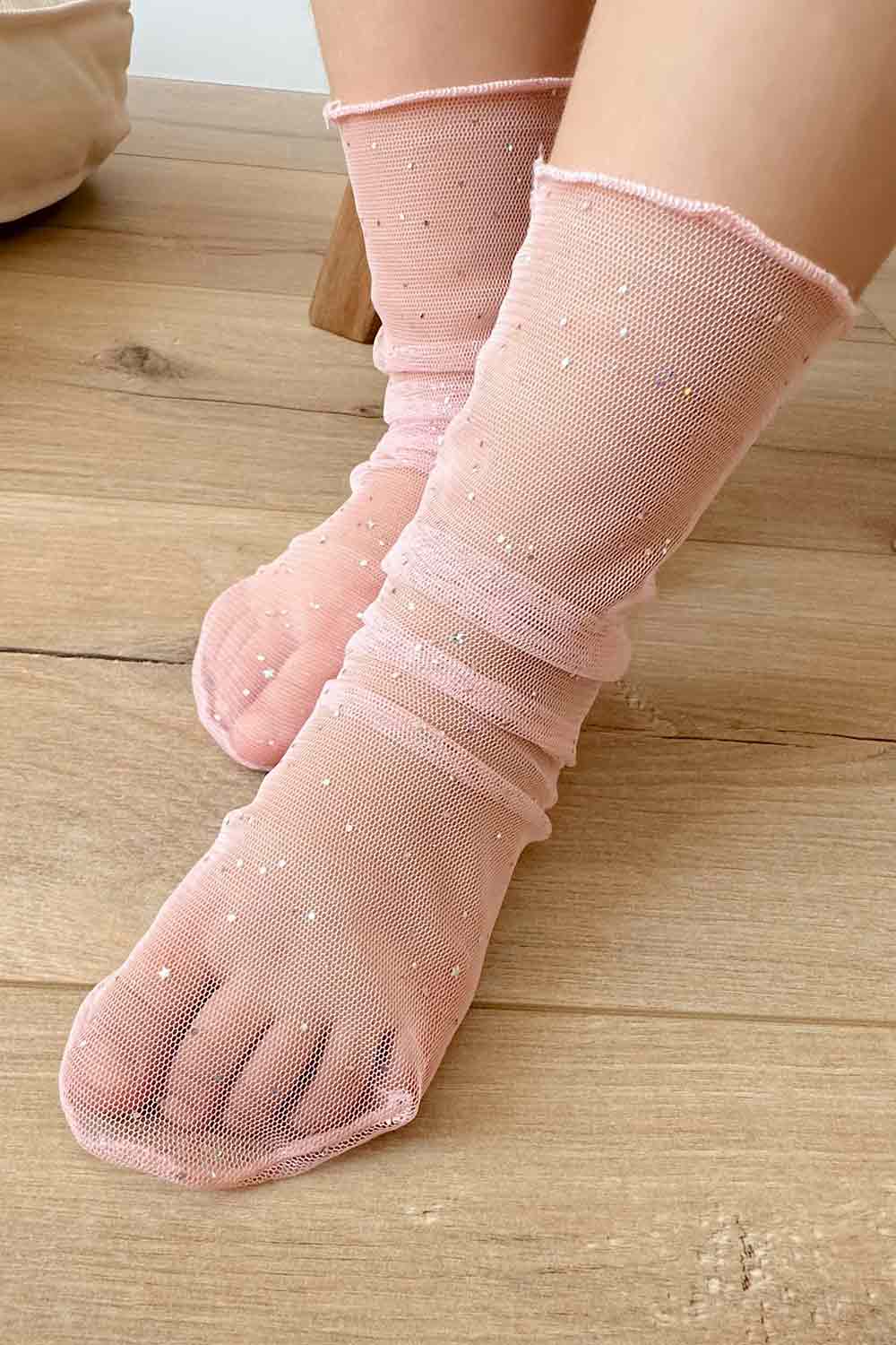 Üzeri küçük sim detaylı tül kız çocuk çorap