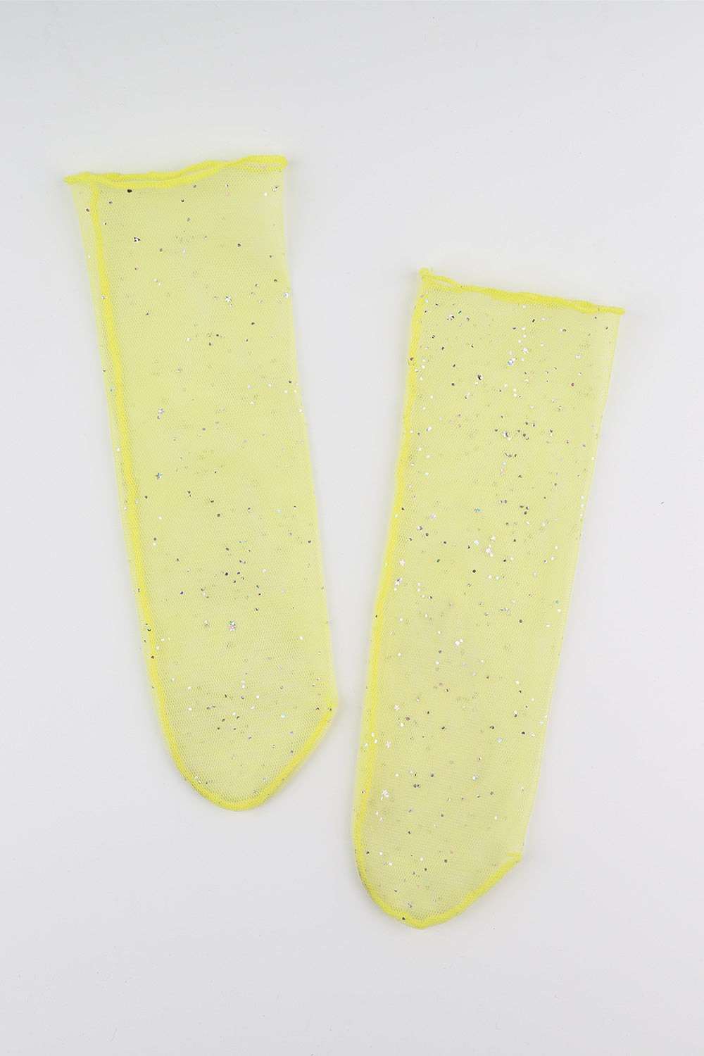 Sarı Küçük Sim Detaylı Kız Çocuk Tül Çorap